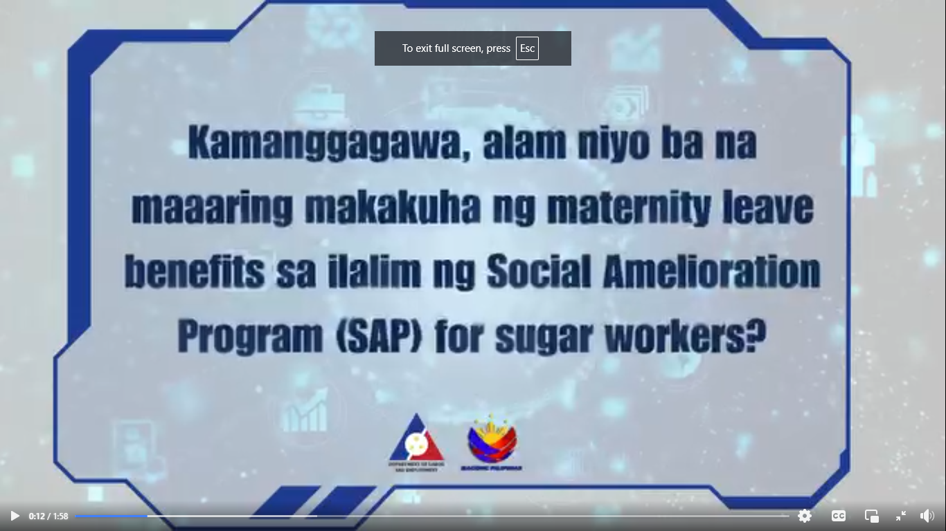 #DOLEYouKnow S3E6 – 砂糖産業労働者向け社会支援プログラム(SAP)の産休給付 News 2025.03.05 スポンサーリンク 👷♀️ 労働者の皆さん、砂糖産業労働者向けの社会支援プログラム(SAP)を通じて、産休給付を受けられることをご存じですか? 📢 女性の月間である今月、SAPのもとで女性労働者がどのように産休給付を受け取ることができるのかを学びましょう! #WEcanbeEquaALL#DOLESAP#SAP#BagongPilipinas#SerbisyongDOLE