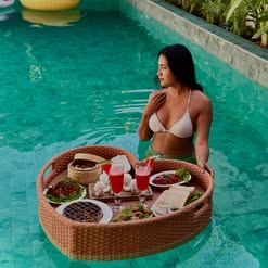 こちらのリゾートには、最大10名まで宿泊可能なヴィラがあり、プライベートプール、ダイニング、リビングエリアが完備されています。